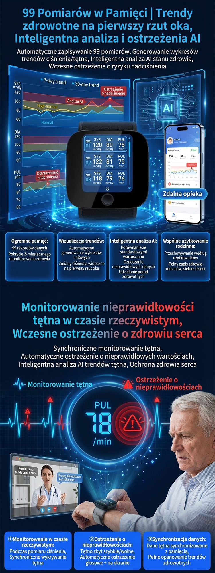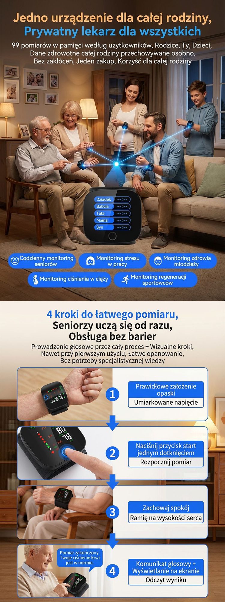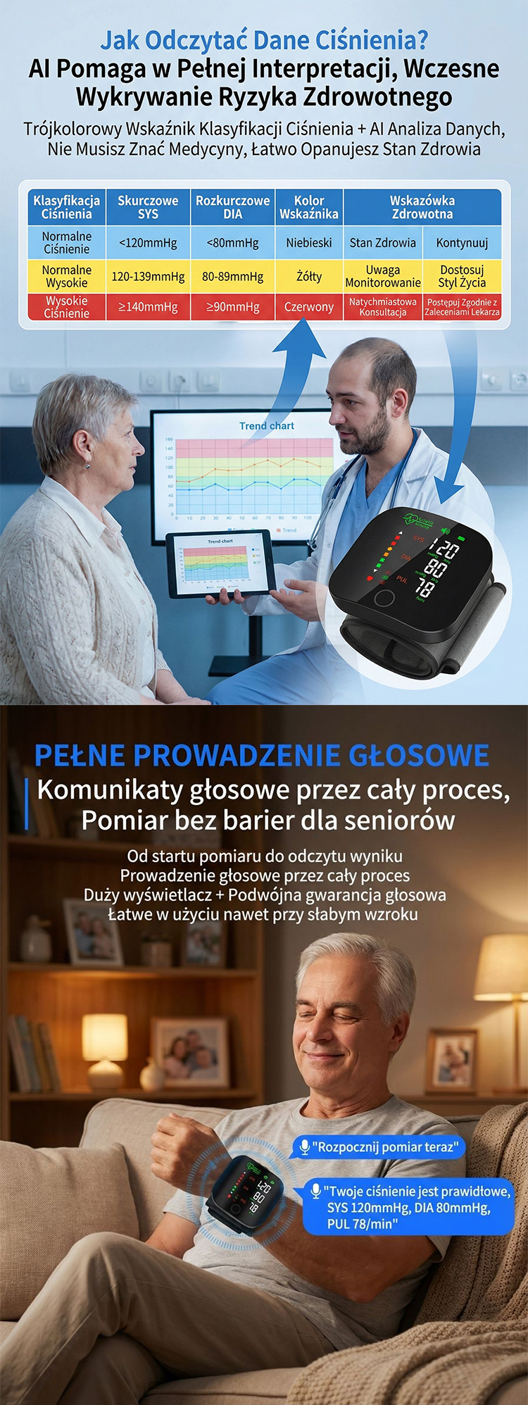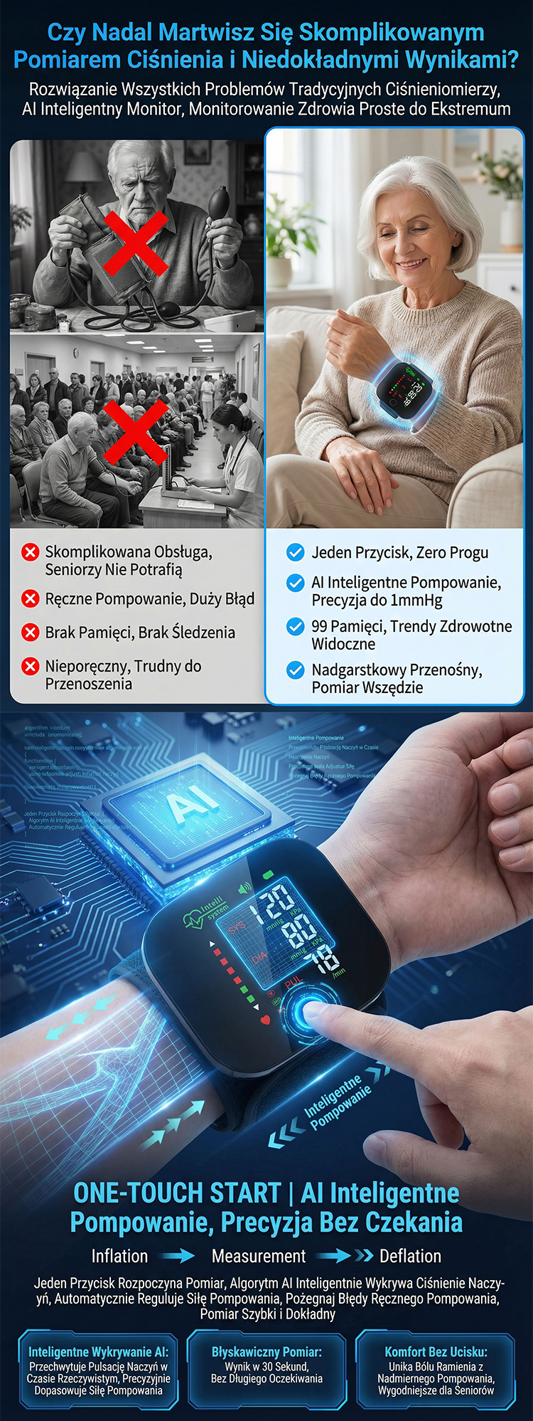 【Rodzinny Prywatny Lekarz】Inteligentny Medyczny Ciśnieniomierz Nadgarstkowy AI
